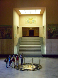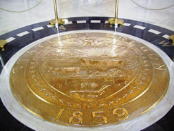 So many of our capitols have exterior domes, columns, and porticos, but Oregon's does not have a typical exterior in many ways. The absence of a dome is immediately noticeable, which makes finding the interior dome, shown at right, quite surprising.